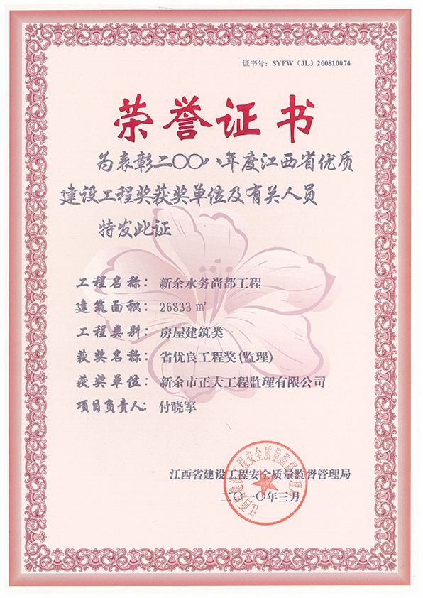 新余市正大工程監(jiān)理有限公司依托新余市建筑設(shè)計院,于1995年11月成立,是新余市開展監(jiān)理工作最早的監(jiān)理單位,本公司具有建設(shè)部核發(fā)的房屋建筑工程甲級監(jiān)理資質(zhì)、市政公用工程乙級監(jiān)理資質(zhì)、國家人防辦核發(fā)的人防工程監(jiān)理乙級資質(zhì)。我公司始終堅持“客戶至上、質(zhì)量第一、信守合同”的經(jīng)營理念;追求“為社會創(chuàng)造價值、為業(yè)主創(chuàng)造效益、為自身謀求發(fā)展”的經(jīng)營宗旨;遵循“守法、誠信、公正、科學(xué)、優(yōu)質(zhì)、高效”的工作原則,以雄厚的技術(shù)力量、完善的管理制度、豐富的監(jiān)理經(jīng)驗、良好的企業(yè)信譽迅速成為我市監(jiān)理行業(yè)的一支新銳力量! 查看更多>>